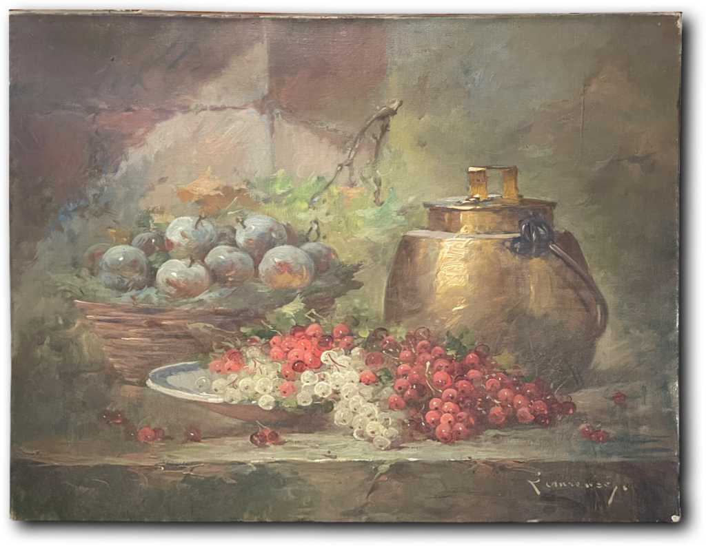 Still life with Cherries, Plums & White Plate